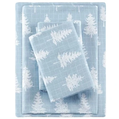 SLEEP PHILOSOPHY True North Cozy Flannel 100% Cotton Ultra Soft Cold Weather Sheet Set Bedding, King, Blue Forest