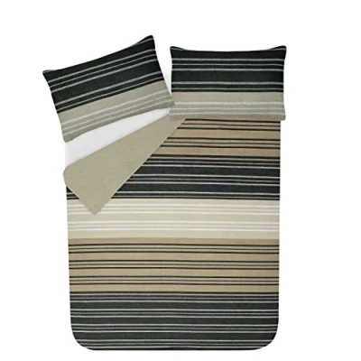 Sleepdown Duvet Cover Set Brown Textured Stripe Reversible Quilt Easy Care Bed Linen Soft Cosy Bedding Sets with Pillowcases King (230 cm x 220 cm)