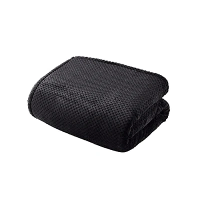 Sleepdown Luxury Waffle Fleece Black Throw Over Sofa Super Soft Warm Cosy Honeycomb Bed Blanket Bedspread 150cm x 200cm, 5056242854456