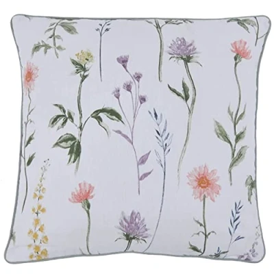 Sleepdown Meadow Stem Floral Printed Cushion Soft Decorative Cotton for Home Decor Sofa Bedroom and Car 45cm x White Multi,5056242896203