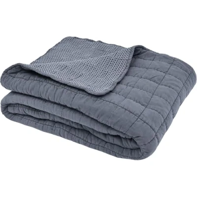 Sleepdown Quilted Waffle Throw Over Sofa Bed Super Soft Warm Cosy Luxury Blanket Bedspread Denim Blue 200cm x 150cm,5056242894322