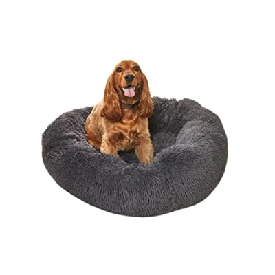 Sleepdown Shaggy Round Plush Dog Cat Calming Super Soft Doughnut Bed, Anti Slip Bottom, Machine Washable Medium (60cm x 60cm 20cm) Charcoal Grey