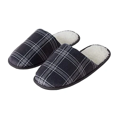 Sleepdown Slippers Mens Check Sherpa, Charcoal, 7/8 UK