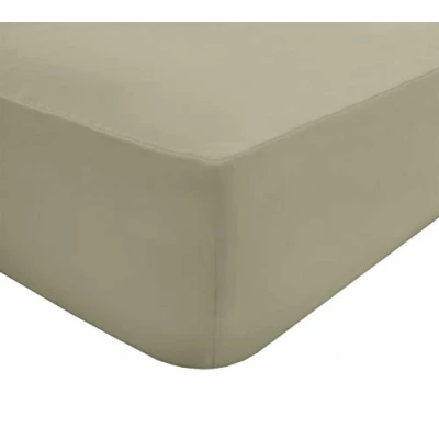 Sleepdown Taupe Plain Fitted Sheet Non Iron 180 Thread Count Percale Poly...