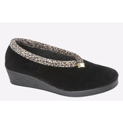 Sleepers Dawn Ladies Velour Full Slippers Black/Ocelot UK 5