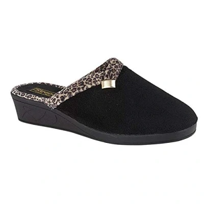 Sleepers Jackie Womens Wedge Slip On Mule Slippers with Knitted Lining and Rubber Sole Black 5 UK