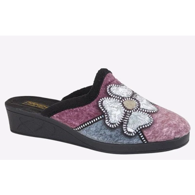 Sleepers Kimberly Womens Mule Slippers with Low Wedge Heel Black/Purple/Blue 4 UK