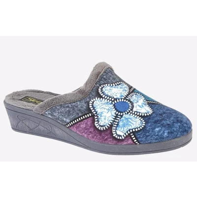 Sleepers Kimberly Womens Mule Slippers with Low Wedge Heel Grey/Purple/Blue 8 UK