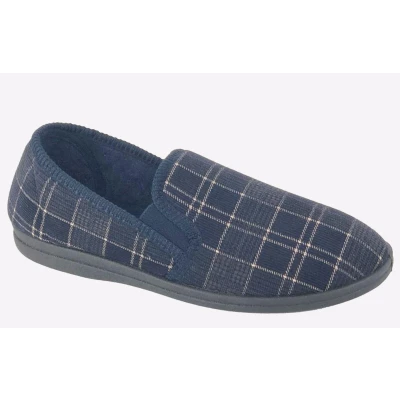 Sleepers Mens Dale Twin Gusset Slip On Carpet Slippers Navy Check Sizes 6 14 Size 13 10 UK