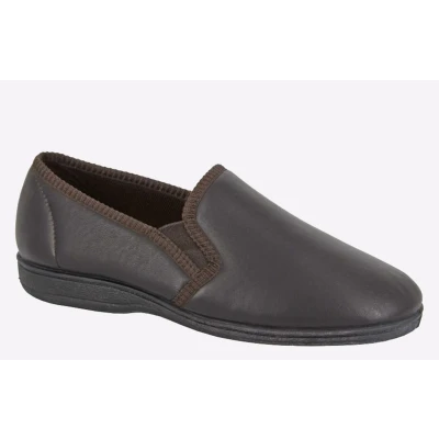 Sleepers Mens Hadley Slip On Gusset Genuine Leather Slippers with Rubber Sole Dark Brown 11 UK