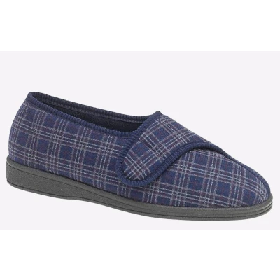 Sleepers Mens Julian II Touch Fastening Washable Memory Foam Wide Fit Slipper with Outdoor Sole Navy 11 UK