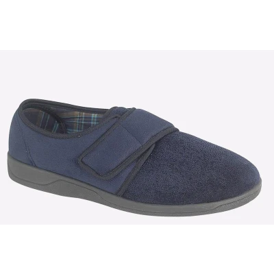 Sleepers Mens Tom Touch Fastening Slippers with Extra Comfort Memory Foam Insole Navy Blue 9 UK