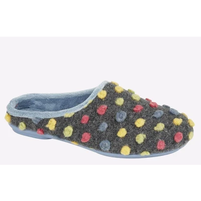 Sleepers Womens Amy Knitted Textile Memory Foam Mule Slippers Blue/Multi 8 UK