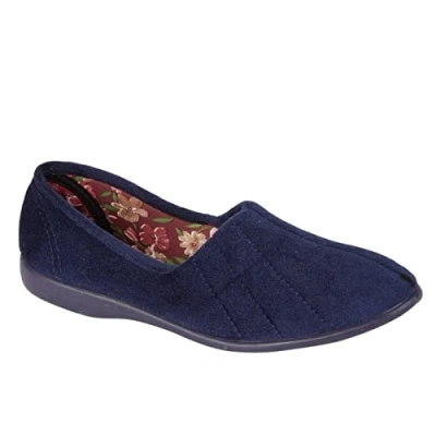 Sleepers Womens Audrey III Roll Top Slippers with Rubber Sole Navy Blue 5 UK