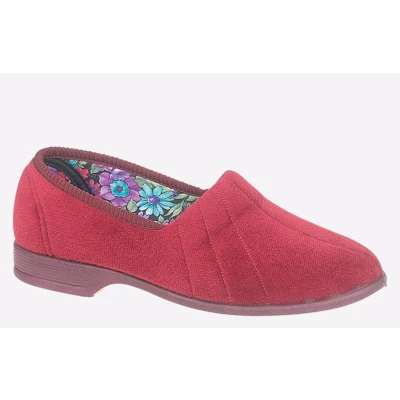 Sleepers Womens Audrey III Roll Top Slippers with Rubber Sole Red 5 UK