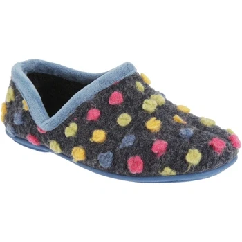 Sleepers Womens Jade Knitted Textile Lightweight Dotted Full Slippers with Rubber Sole Blue 4 UK