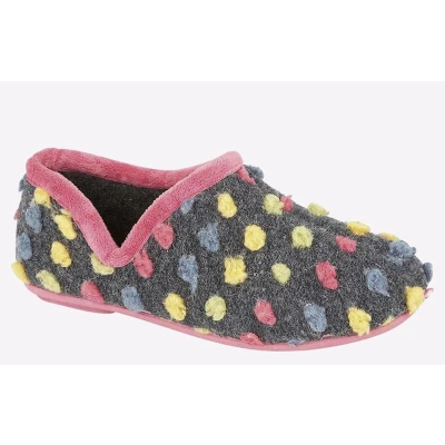 Sleepers Womens Jade Knitted Textile Lightweight Dotted Full Slippers with Rubber Sole Fuchsia 3 UK