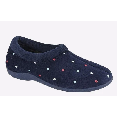 Sleepers Womens Sophie Memory Foam Full Collar Slippers Rubber Sole Navy Blue 7 UK
