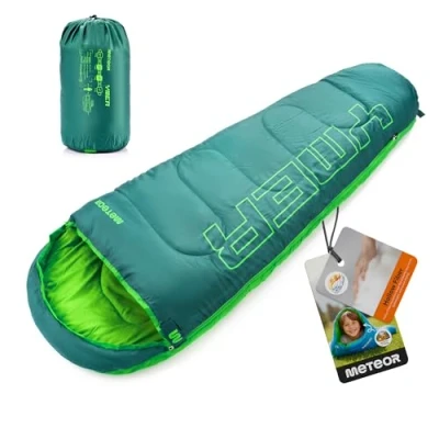 Perfect for all seasons: Ideal for winter, spring, summer or fall, this warm and breathable sleeping bag keeps your child comfortable on every trip, from cool forest nights to chilly summer nights. Compact and easy to carry: Weighing just 750 g and folding to 30x20 cm, it's the ideal gear for kids and teens to take along on any adventure – light enough for little travellers to carry themselves. Soft and warm materials: With a soft polyester lining and hollow fibre filling, this camping equipement provides excellent insulation, ensuring warmth and comfort throughout the night. Designed for kids and teens: The YMER model suits children up to 155 cm tall, with a hooded mummy shape offering extra warmth and space to move – perfect for sleepovers and hiking trips. Safe and reliable sleep space: More than just a bed – it's peace of mind for parents. This high-quality sleeping bag protects your child in nature, whether it's a weekend camp or an autumn holiday.