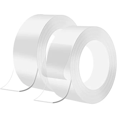 【EXTRA STRONG DOUBLE SIDED TAPE】Our new traceless double sided tape is made of high quality Acrylic.The strong grip fits in many heavy duty mounting tasks and can stand the test of time. No nails, no drilling, leaving no marks, and that makes the nano tape a hit in many households. 【SIZE】2 Pack Nano Tapes. Length: 3 M; Width: 2CM; Thickness: 1MM. Easily cut it to the size you need. It is also stretchy and flexible. 【WASHABLE AND REUSABLE】Washable and Infinitely Reusable.If the reusable tape becomes dirty, you can clean the dust on the surface with water and let it dry naturally to use it again.(Please note,DO NOT use any other wipes or detergent.) 【EASY TO USE AND WITHOUT RESIDUE】Stand the tape upright when using as it’s sticky on both sides. Snip it into desired length. Make sure the contact surface is clean and dry. Give the tape a good press before peeling the outer film off. Nano tape is easy to tear off without leaving any residue or stains.(Please don’t stick fragile items or anything with high value on the tape.) 【WIDELY VERSATILE USE】The double-sided waterproof tape can be used in all aspects of life, such as kitchen, office,bathroom, living room,garden and so on. It works very well with tile, glass, wood, metal, plastic, leather, etc. Yet it does not work on dusty, wet, greasy surface. For painted wall and thin wall paper, please always test on a small area first.