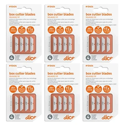 FIND THE RIGHT MODEL - For Use Exclusively with Slice Cutting Tools SKU# 10400, 10503, 10512, 10513, and 10514 BE SAFER - 4 Dual-Sided Slice Ceramic Blades - Rounded Tip Prevents Accidental Injuries STAY SHARP - Zirconium-Oxide ceramic blade is non-conductive, anti-magnetic, never rusts and stays sharp up to 11x longer than steel blades MULTIPLE BENEFITS - Never rusts, chemically inert, non-magnetic, non-sparking, non-conductive, no oil coating like traditional metal blades STAY INJURY-FREE - Less Blade Changes Means Less Injuries = Reduced Chance of Injuries & Lower Costs, Weight: 6.172943336E-4 pounds, Manufacturer: Slice