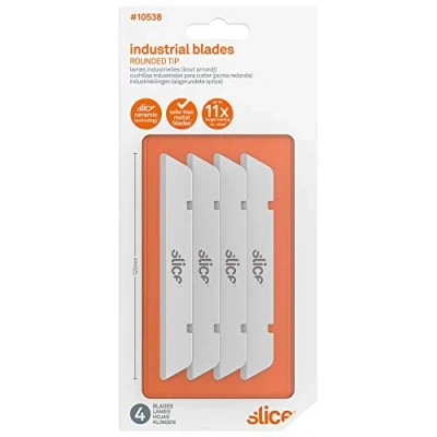 REPLACEMENT BLADES: Slice industrial blades are designed to work exclusively with Slice handles for optimal safety and function – Slice Industrial Knives (#10559 and #10560) and the Slice Long Handled Scraper (#10599) HIGH-TECH CERAMIC BLADE: Slice safety blades' unique edge might seem dull, but it cuts your material effectively while keeping you safe! Slice blades are finger-friendly and safe to the touch. Other blades are dangerously sharp. THICK CUTS: Extra long blade is perfect for thick, soft materials like foam, batting, and insulation. Round Tip guards against accidental punctures. Cutting depth is approximately 3 inches. ECONOMICAL: Slice blades start at a safe and effective sharpness and stay there 11 times longer than metal. NEVER RUSTS: All Slice blades are made from 100 percent zirconium oxide: A non-magnetic, chemically inert, and non-conductive material that is much harder than steel., Weight: 0.02645547144 Pounds, Manufacturer: Slice
