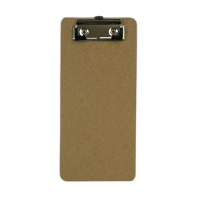 Slim Wooden Clipboard. Suitable for A6 Papers. Includes Hanging Hole. Strong metal clip with black plastic edge to keep documents safe. Size of full board approx 224x105mm. Fits approx 210x105mm documents.