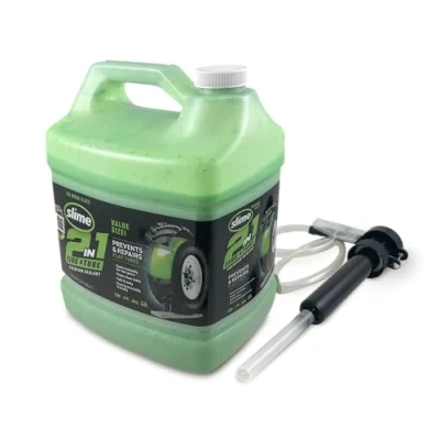 Don't let a flat ruin your day, let Slime's 2-in-1 Tyre & Tube Premium Sealant protect your tubes and tyres for up to two years When a puncture occurs, Slime’s patented sealant is carried directly to the source. The pressure of the escaping air forces the particles into the opening, where they build up and intertwine to form a long-lasting, flexible plug When a puncture occurs, Slime’s patented sealant is carried directly to the source. The pressure of the escaping air forces the particles into the opening, where they build up and intertwine to form a long-lasting, flexible plug Perfect for preventing and repairing flat tyres in all non-highway tyres: bicycles, dirt bikes, ATVs/UTVs, golf carts, riding lawn mowers, small trailers, tractors, scooters Environmentally friendly. Non-toxic, non-corrosive and non-hazardous, Non-flammable, Water soluble, Weight: 9.149183873 pounds, Manufacturer: Slime