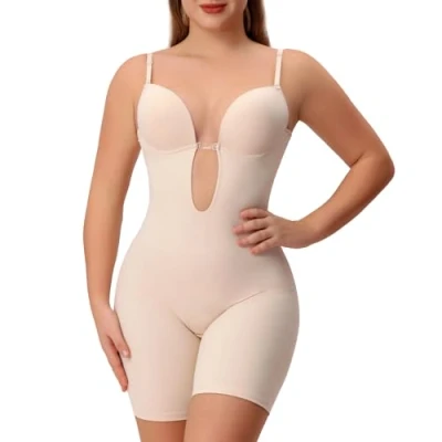 BACKLESS DESIGN&U PLUNGE:The womens shapewear bodysuit with built in bra,provide coverage and great chest support without the need for an additional bra. It features of u plunge neckline and low back design which can be well matched with any low cut top or low-back dresses. It hugs, contours and boosts your curves just right. SLIMMING& BREATHABLE FABRIC: This full body shaper bodysuit is made of high-elastic, smooth and soft breathable fabric,it can fits our body like a second skin and helps to smooth out any unwanted belly,tighten fat on the thickest part of the thigh. It will provide you with all day comfort without any squeezing or bunching but shape your body. STRAPLESS &OPEN CROTCH:The strapless shapewear with adjustable And removable straps, you can option to wear it as a strapless, casual cami, criss-cross.The elastic band on the back also can be adjusted according to the size.The crotch part has adjustable 3 rows of hooks eyes closure makes it simple to use bathtroom. SUITABLE FOR ANY OCCASION AND SEASON: The full body shapewear suitable for any body proportions,great for weddings,Christmas,New Year,birthday party,dating etc.The shaping bodysuit for women has a variety of ways to wear, you can wear it under any clothes, such as blazer,cami tank top, wedding dresses etc.Our deep v low back bodysuit looks stylish and versatile. It is one of the essential items for every elegant woman's closet!Get a SLIMERS body shapewear for women,you'll never regret. TIPS FOR CHOOSE LOW BACK SHAPEWEAR: For better shaping curve effect,please read the picture' Size Chart and measure before order.When your size is at the edge of the size chart, 1. if you want a tighter fit, consider choosing one size smaller 2. if you want a more relaxed and comfortable fit, consider choosing one size larger.Any issue about this backless shapewear,pls feel free to contact us.