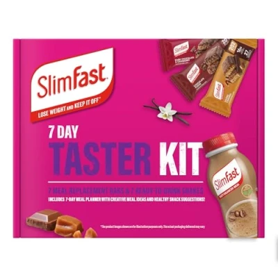 SlimFast 7 Day Taster Kit Meal Replacement Bars & Ready to Drink Shakes, High Protein, Fibre, 27 Vitamins Minerals, Planner, Low Calorie Snacks for Weight Management