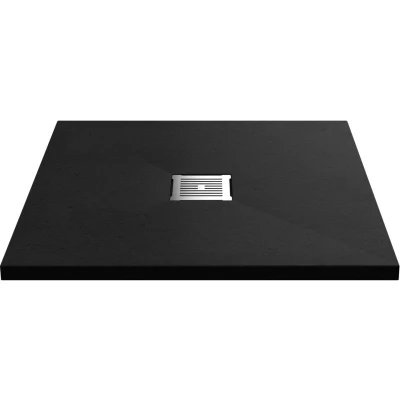 General description This slimline square shower tray mimics the design of a wet room floor with gentle sloping gradients and a centrally-positioned shower grate. Manufactured from a mineral stone resin formula, it offers excellent strength and a textured black slate effect surface for a premium look and feel. The tray is suitable for installation flat on the floor or inset into the floor to create a level access walk-in shower. Technical specifications Tray Type: Standard Width: 800mm Depth: 800mm Height: 32mm Waste Position: Centre Core Material: Pearlstone (Mineral Stone Resin) Surface Material: Acrylic-Capped ABS Surface Texture: Slate Effect Shape: Square Colour: Black Slate Weight: 27 Kg Model Number: NLT91006 EAN Barcode: 5056462656199 Compatibility and accessories Compatible with standard 90mm waste outlets (waste sold separately) Several optional grille/grate colours available for customization Installation Can be installed flat on the floor or recessed into the floor for