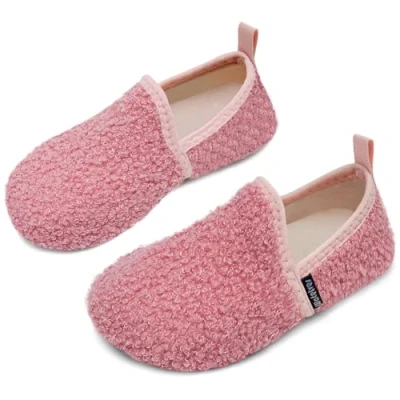 Slippers Kids Girls Slipper Winter Warm Furry Socks with Non Slip Sole for Indoor(Pink 22/23)