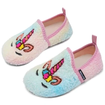 Slippers Kids Girls Slipper Winter Warm Furry Socks with Non Slip Sole for Indoor(Unicorn 22/23)