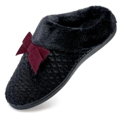Women's Warm Memory Foam Winter Slippers with Bow, Black, 40/41 maoben Black Bow Tie 40-41 m eu / 9-