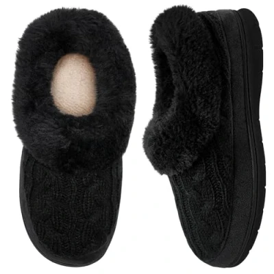 Slippers Women Knitted Ladies Memory Foam Winter Warm Closed back Home Slippers(Black,5/6 UK)