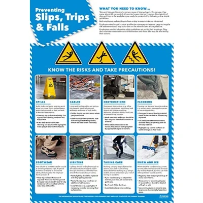 Slips, Trips & Falls Safety Health and Posters Laminated Gloss Paper 850mm x 594mm (A1) Office Commercial Wall Charts Education by Daydream