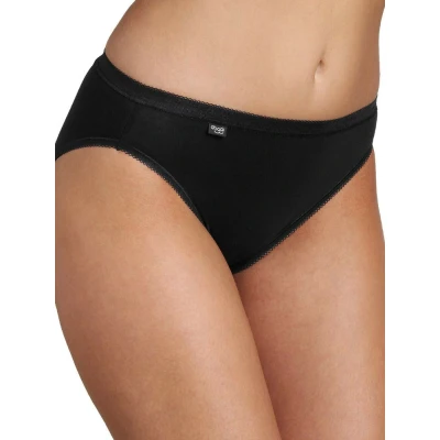Sloggi Basic+ Tai Brief in White. 4 Pack. Cotton rich knickers. Mid-rise knickers with moderate rear coverage and an elasticated waistband. The product is machine washable.