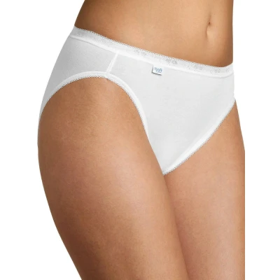 Sloggi Basic+ Tai Brief in White. 4 Pack. Cotton rich knickers. Mid-rise knickers with moderate rear coverage and an elasticated waistband. The product is machine washable.