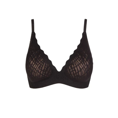 The great feeling of Zero Feel! Incredibly light, with total, 360° stretch, Sloggi’s Zero Feel Bliss The UP P Bra gives you all the lift and support of a push up bra, but without uncomfortable wires, seams or labels. In a graphic stretch lace fabric, with a contrasting smooth, super-fine microfibre layer beneath, these bras look fabulous and feel even better. Offering superb freedom of movement and breathability, thanks to the full stretch microfibre (made with recycled polyamide), these bras fit like a second skin, assembled using flat, free-cut edges and pinch-free dot bonding instead of conventional stitched seams. Fully adjustable for a perfect fit, with a four-position hook-and-eye back strap, and adjustable shoulder straps. The specially shaped and cushioned push up ‘cookies’ that give you that enhanced silhouette are fully removable.
