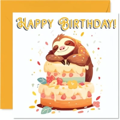Sloth Birthday Cards Animal Cake Happy Card for Son Daughter Brother Sister Grandson Granddaughter Niece Nephew Cousin, 145mm Bday Greeting