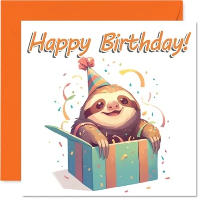 Sloth Birthday Cards Animal Gifts Happy Card for Son Daughter Brother Sister Grandson Granddaughter Niece Nephew Cousin, 145mm Bday Greeting