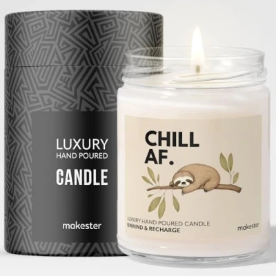 Sloth Gifts Luxury Soy Wax Candle Vanilla, Jasmine, Sugared Almond Makester