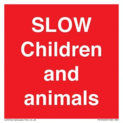 No Symbol This sign is made from plastic rigid 3mm 3mm plastic sign with foam core. Can be screwed, stuck with adhesive or hung with a hanging kit. Not suitable for cable ties. S85 square Sign Text: SLOW Children and animals