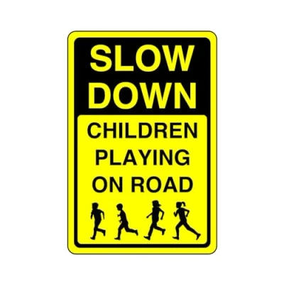 Slow down children playing on road 3mm Aluminum Dibond high visibility and durability for indoor/outdoor usage (600mm x 400mm) Ensures Safety Within 20m Viewing Distance.