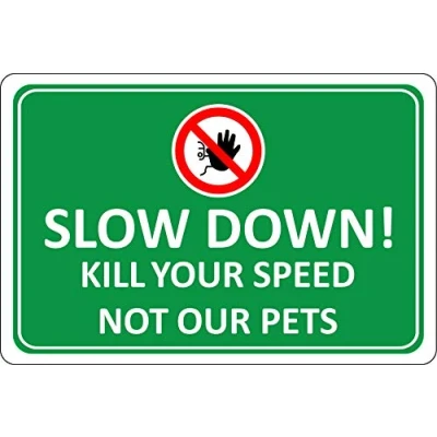 Slow down kill your speed not our pets Road safety sign Self adhesive sticker 300mm x 200mm