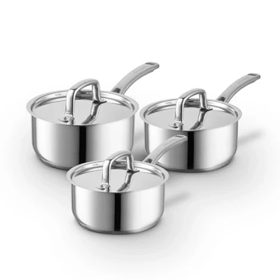 SLT900224 Sur La Table Core 3 Piece Saucepan Set with Lids, Riveted Steel Handles, Induction Compatible, 16cm/18cm/20cm Saucepans, Stainless