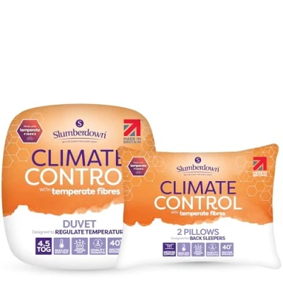 Slumberdown Climate Control Double Duvet 4.5 Tog Temperature Regulating Lightweight Cool Summer Quilt for Night Sweats, 2 Medium Pillows Hypoallergenic, Machine Washable, Size (200cm x 200cm)