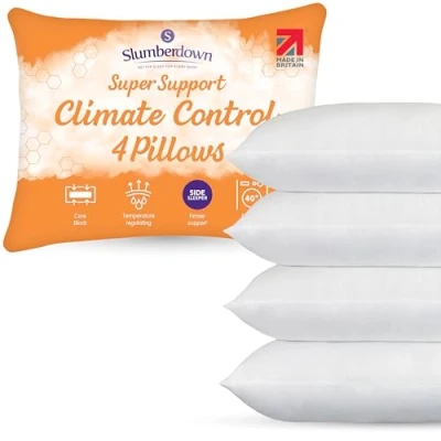 Slumberdown Climate Control Super Support Pillows 4 Pack Firm Side Sleeper for Neck and Shoulder Pain Relief Cool Night Sweats, Hypoallergenic, Size (48cm x 74cm)