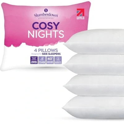 Slumberdown Cosy Nights Pillows 4 Pack Firm Support Side Sleeper for Neck and Shoulder Pain Relief Supportive, Hypoallergenic, UK Standard Size (48cm x 74cm)