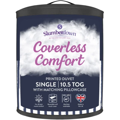 All-Year Round Comfort - Get more from your duvet. This 10.5 tog single duvet is crafted to give you the the perfect balance of warmth and breathability - keeping you cosy in spring, cool in summer, and snug through autumn and winter. 2-in-1 Reversible Design - Instantly change the look of your bed with our single duvet. Simply flip this navy coverless duvet and 2 matching pillow cases and choose from printed stripe design or a plain yet stylish reverse, the choice is yours. 2-Year Guarantee - Lovingly made in the UK with high quality & premium materials. Experience trusted British-made single bedding backed by a 2-year quality guarantee so you can sleep easy knowing your comfort is covered season after season. One Duvet, Many Uses - Slumberdown coverless duvets are perfect for everyday bedrooms, children's rooms, student accommodation, guest stays, sleepovers, or even camping - ideal for anyone who wants comfort without the hassle of changing covers. Non-Allergenic - Wake up refreshed as this single bed duvet is filled with non-allergenic hollowfibre and free from materials likely to trigger allergies. Enjoy clear breathing and fewer symptoms like sneezing, itching, or watery eyes.